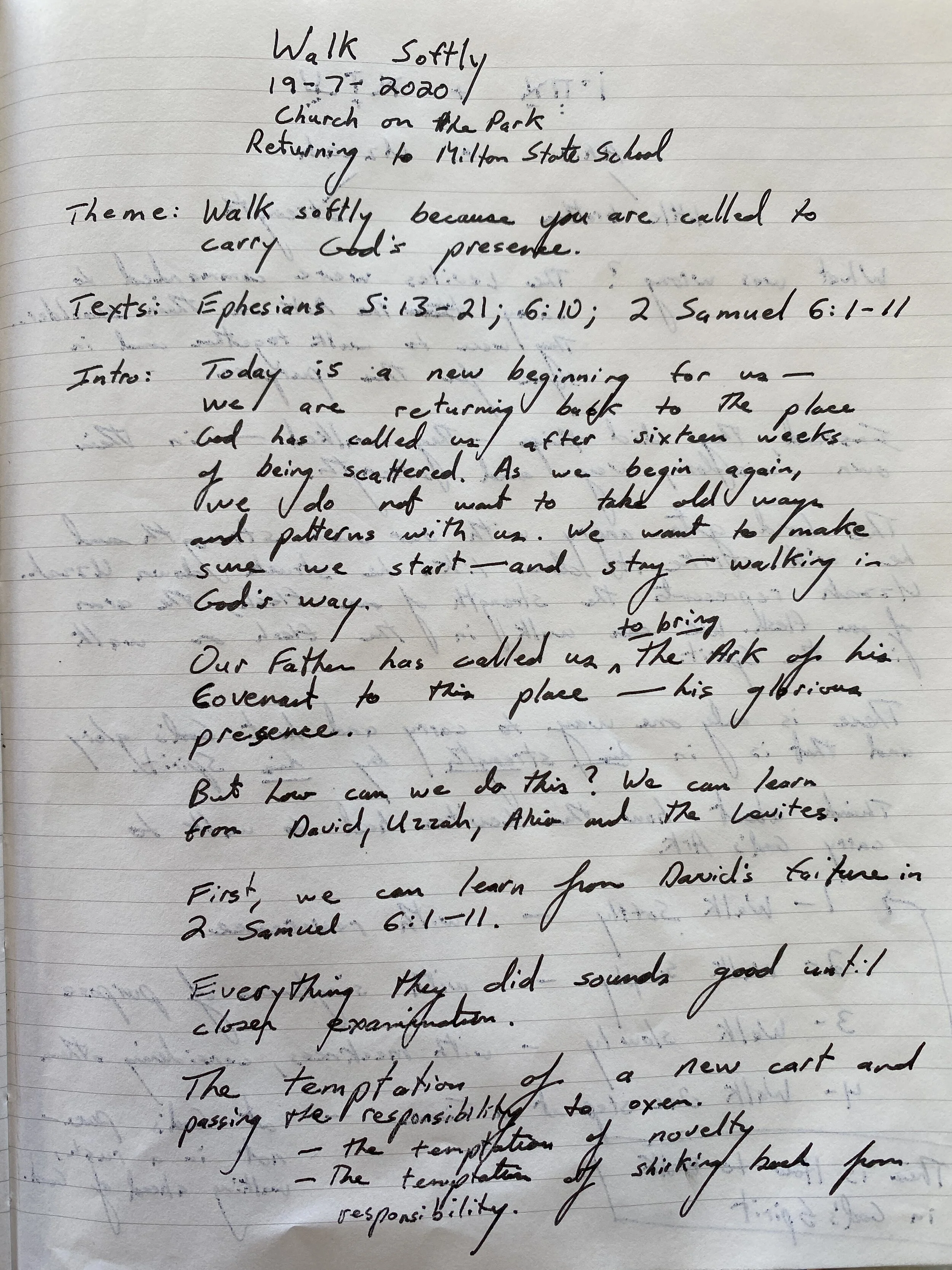 It’s a short summary of our message from Sunday, our first Sunday back in Church on the Park after the COVID crisis.